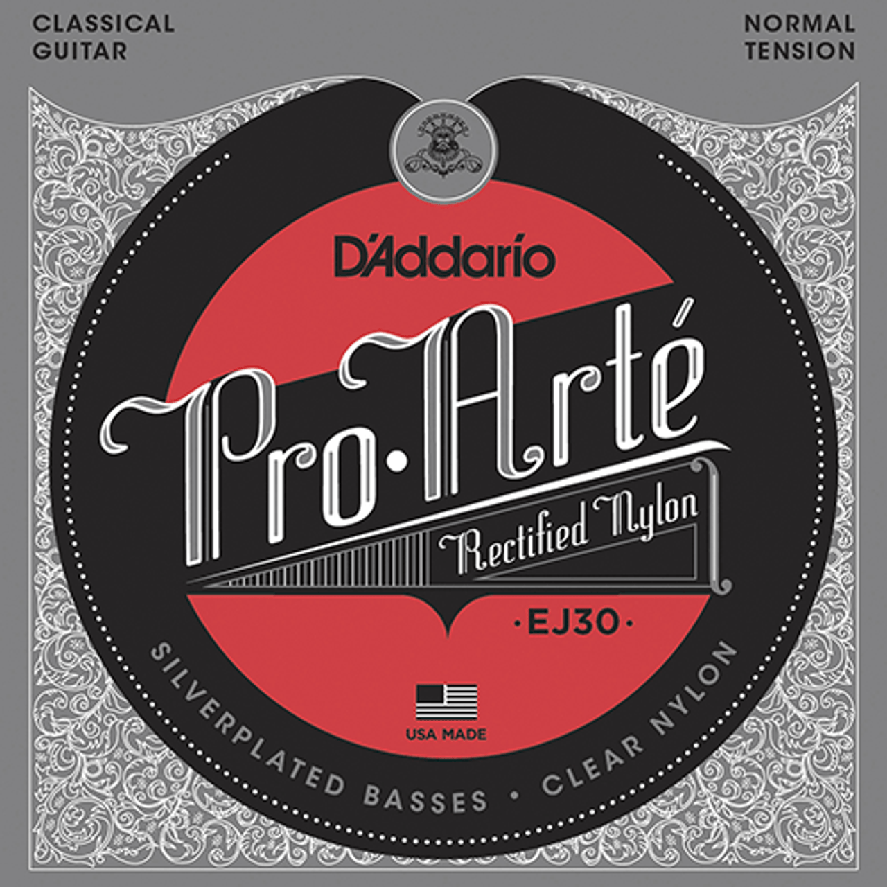 D’Addario EJ30 classical guitar strings are a normal tension set containing silver on nylon wound basses and rectified clear nylon trebles for highly accurate intonation.