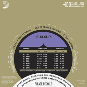 D’Addario EJ44LP lightly polished, extra-hard tension classical guitar strings are optimal for maximum string resistance and projection without compromising tone. Pro-Arté lightly polished composite strings feature an exclusive multifilament core material which delivers a powerful, but warm tone which lasts 2–3 times longer than traditional classical strings. Each wound string is polished to a smooth surface for reduced finger noise. In addition to three traditional nylon treble strings, the EJ44LP set contains an optional monofilament composite 3rd/G string, which provides greater projection and optimal balance between basses and trebles. All Pro-Arté treble strings are sorted by a sophisticated computer-controlled laser machine which performs diameter/tension measurements and quality checks, ensuring true sounding, precise trebles in every set. Pro-Arté lightly polished sets are also ideal for recording.