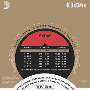 - EXP coated version of D’Addario’s most popular classical string; known for quality, consistency and a warm yet projecting tone