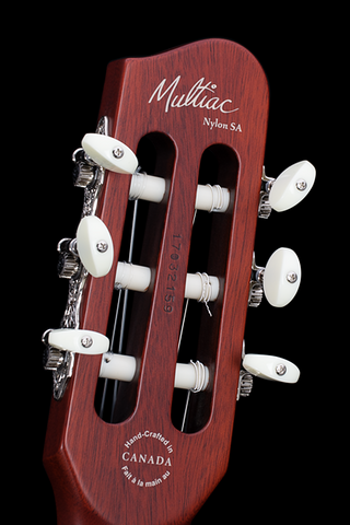 The Multiac Nylon Duet Ambiance features state-of-the-art custom electronics by Fishman, which allow the player to select between 4 individual mic settings. Choose between these blendable sound imaging mics via the 4-way switch. Ideal for players looking for an incredible amplified nylon string sound and feel in a live and loud band setting with virtually no feedback.