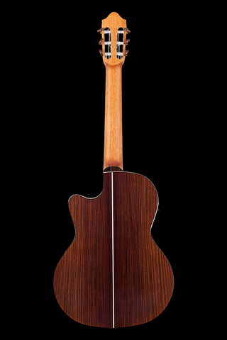 The Kremona Performer Series Fiesta F65CW-SB is a finely crafted acoustic-electric guitar that combines exceptional performance with stunning visual appeal. Built with a solid spruce top and solid Indian rosewood back and laminated sides, this model takes Kremona’s renowned design to a new level with its stage-ready cutaway body. Delivering a warm, resonant tone, the Fiesta F65CW-SB excels across a variety of musical genres, from classical and jazz to pop. The rosewood back and sides contribute to deep, rich bass tones, while the ebony fingerboard ensures smooth, effortless playability. Featuring a Fishman Prefix Pro-Blend preamp and dual-source pickup system, this guitar offers crisp amplified sound, with balanced lows and clearly defined midrange frequencies. Its 650mm scale 52mm neck width offers a comfortable, familiar playing experience, making it perfect for both live performances and studio sessions. With its elegant craftsmanship and versatile tone, the Fiesta F65CW-SB stands as a true blend of artistry and practicality for musicians seeking to elevate their sound and style.