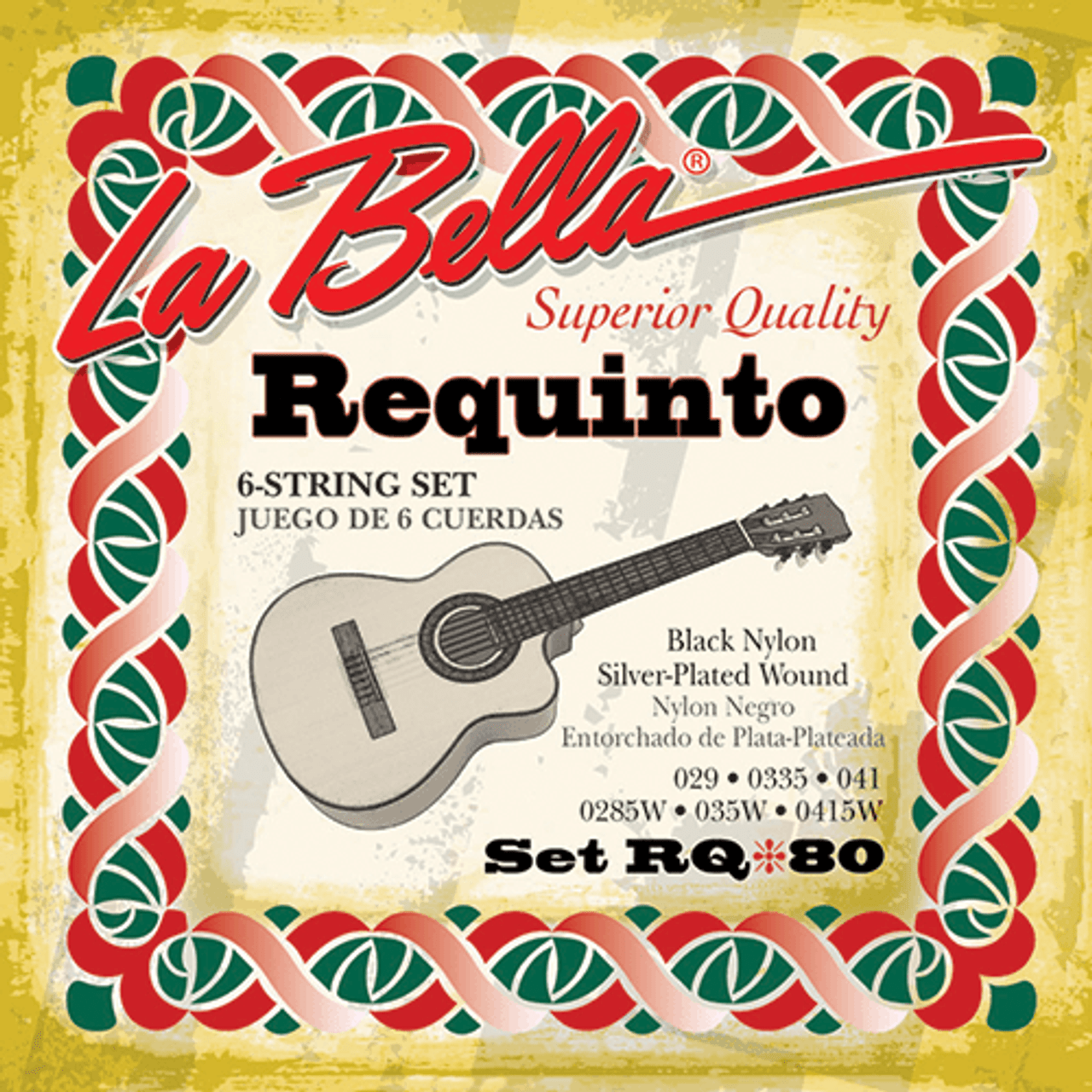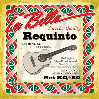 The La Bella RQ80 Requinto 6-string set consists of black nylon trebles and silverplated wound basses, and offers A2-D3-G3-C3-E4-A4 or A2-D3-G3-B3-E4-A4 tuning.