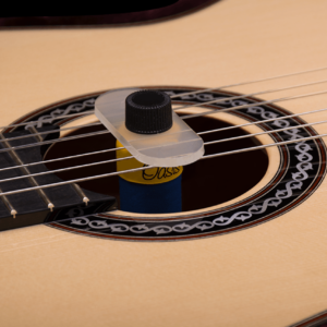 When mounted between the D and G strings in your guitar’s soundhole, the USA-made Blue Oasis OH1 Guitar Humidifier protects your instrument against hairline cracks that might result from drying out. What sets the OH1 apart from many other soundhole-mounted humidifiers is its elegant anti-leakage design. Soundhole humidifiers that use foam or sponge to hold water may provide adequate defense against dry environments, but fail to protect the instruments from potential leakage from the humidifiers themselves. The Oasis OH1 prevents water leaking into your guitar in two ways: