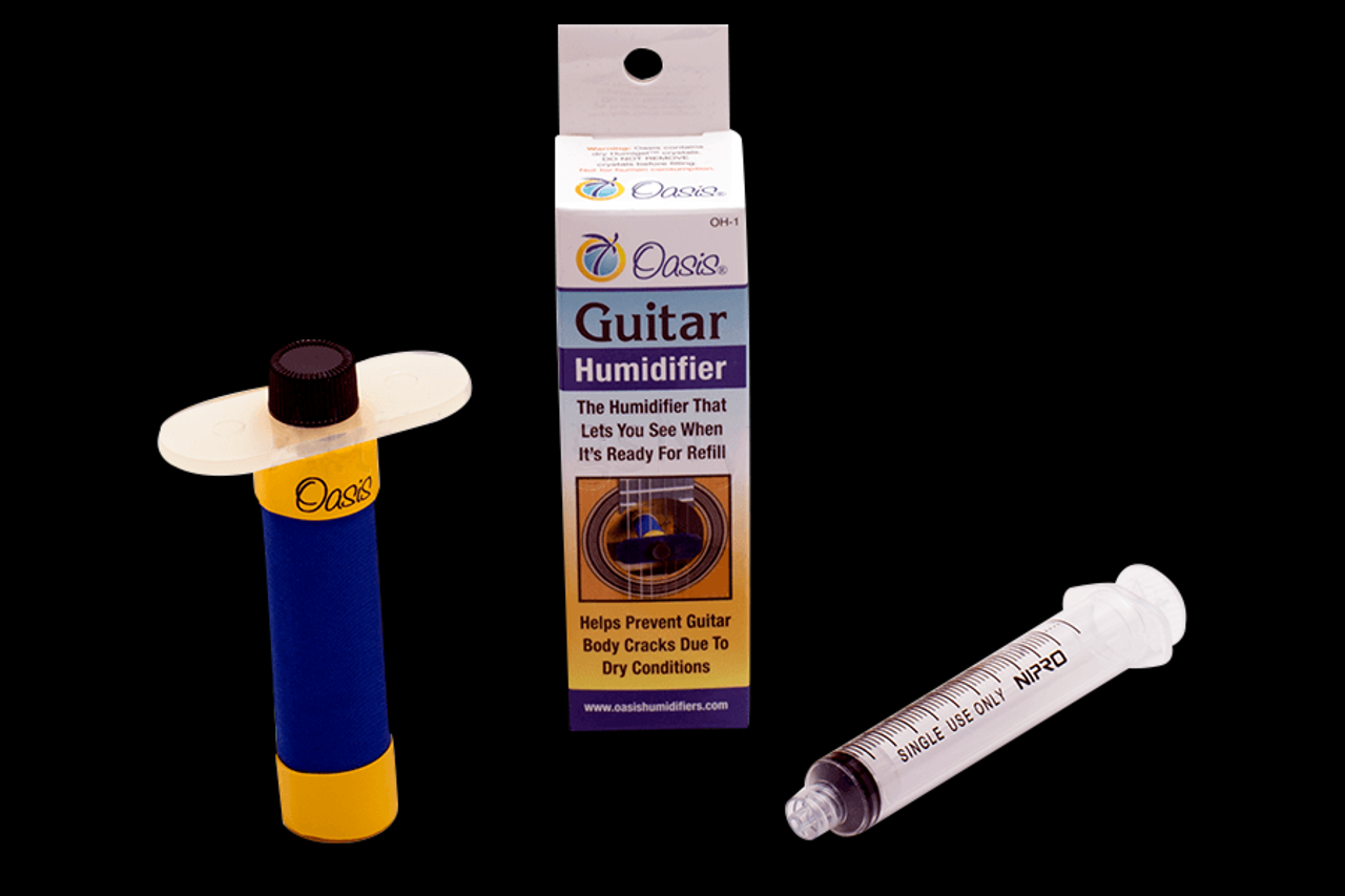 The Blue Oasis OH1 humidifier is suitable for moderately dry environments with humidity levels between 25% and 40%. If your room is extremely dry, with its typical humidity below 25%, we recommend the Oasis OH5 Plus+ model instead. In conditions above 40% humidity, you should NOT use a humidifier at all. Typically, humidity drops in the fall and rises in the spring, so you may not need to humidify your guitar all year round, or you may switch between the OH1 and OH5 models as needed. It’s best to use hygrometers to determine the exact humidity levels both inside and outside your guitar case.